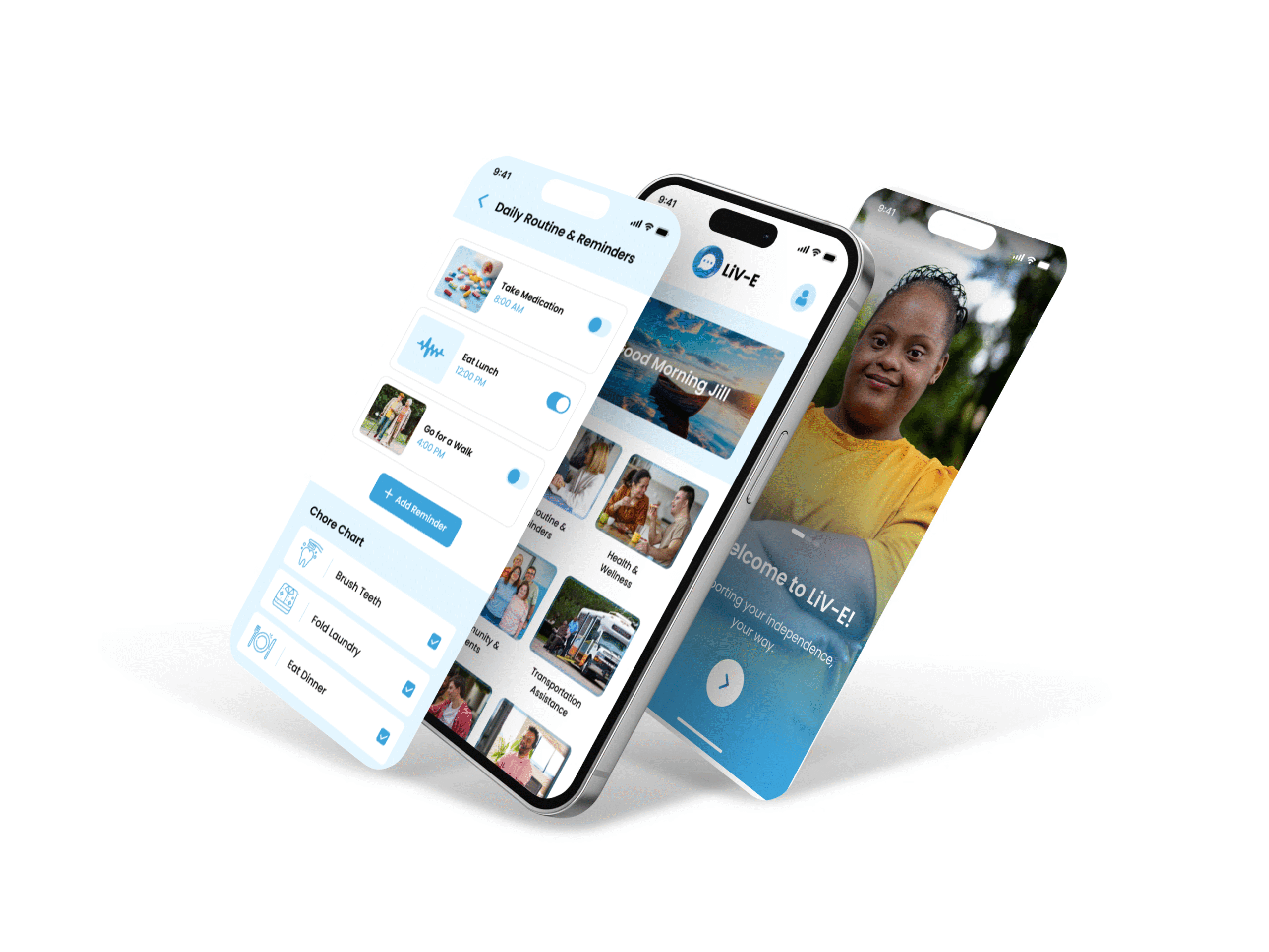 Liv-E is designed to help individuals, especially the elderly and people with intellectual disabilities, live independently and confidently. It’s a complete digital support system that assists with daily routines, health tracking, and safety all while staying connected to family and agencies.